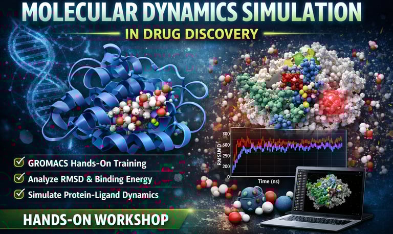 This online hands-on workshop provides a comprehensive understanding of molecular dynamics (MD) simulations and their applications in drug discovery. Participants will learn how to set up simulations, run them using GROMACS, and analyze results to study protein–ligand interactions and stability.